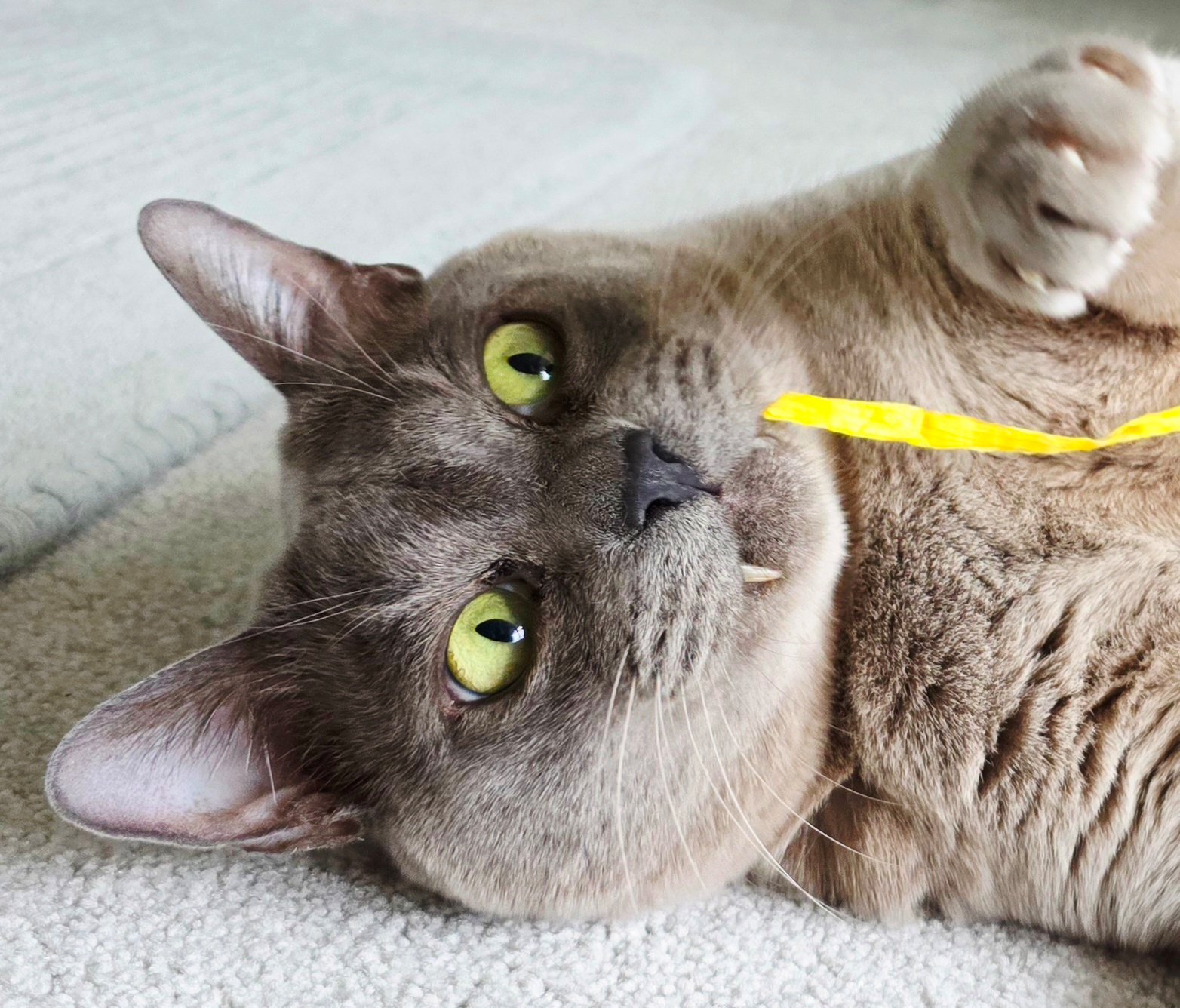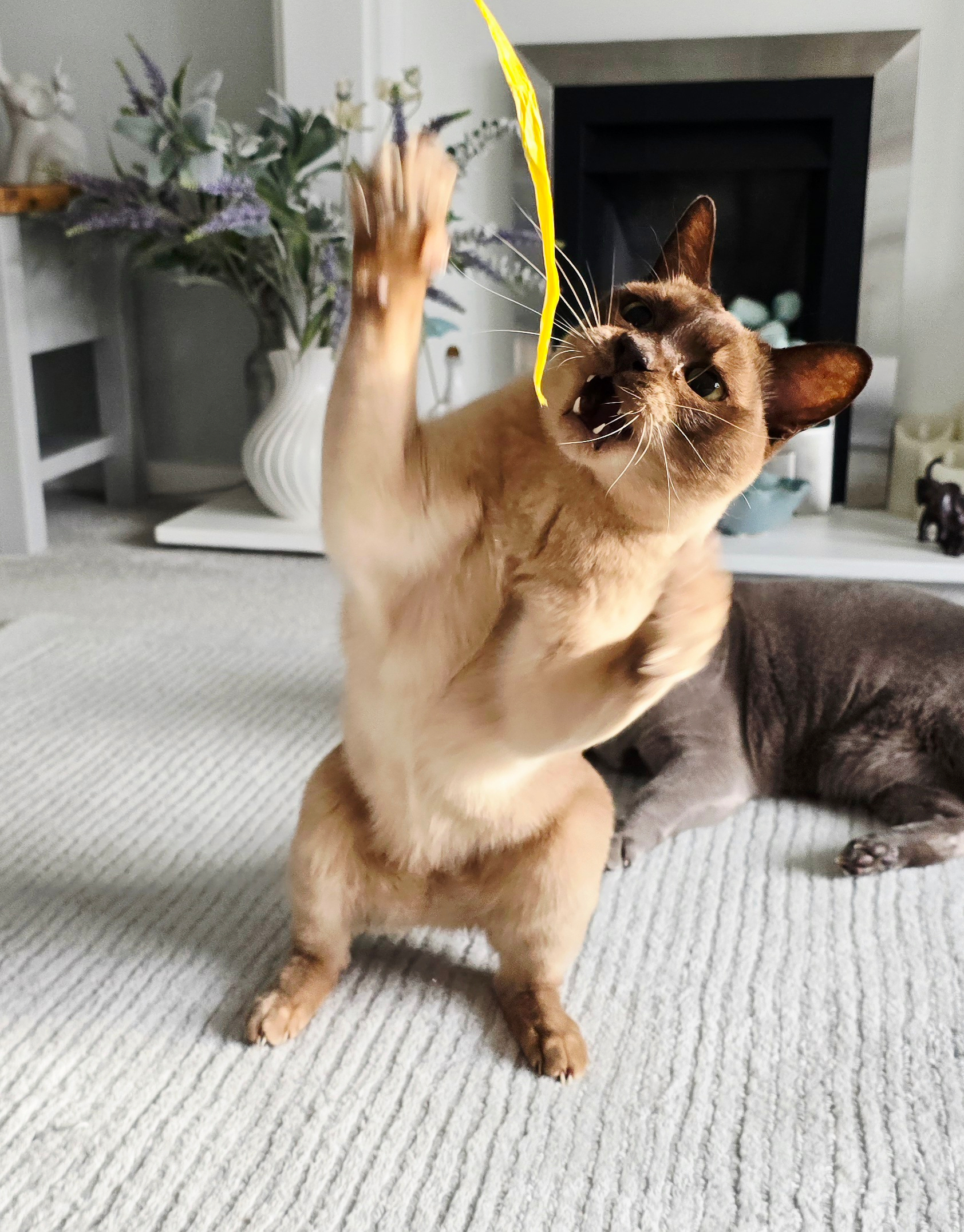 Meet Bodkin. The master of silly faces and the biggest, chunkiest boy. He’s a bit of a scaredey cat and spends lots of time sleeping on top of the kitchen cupboards, until playtime. π
