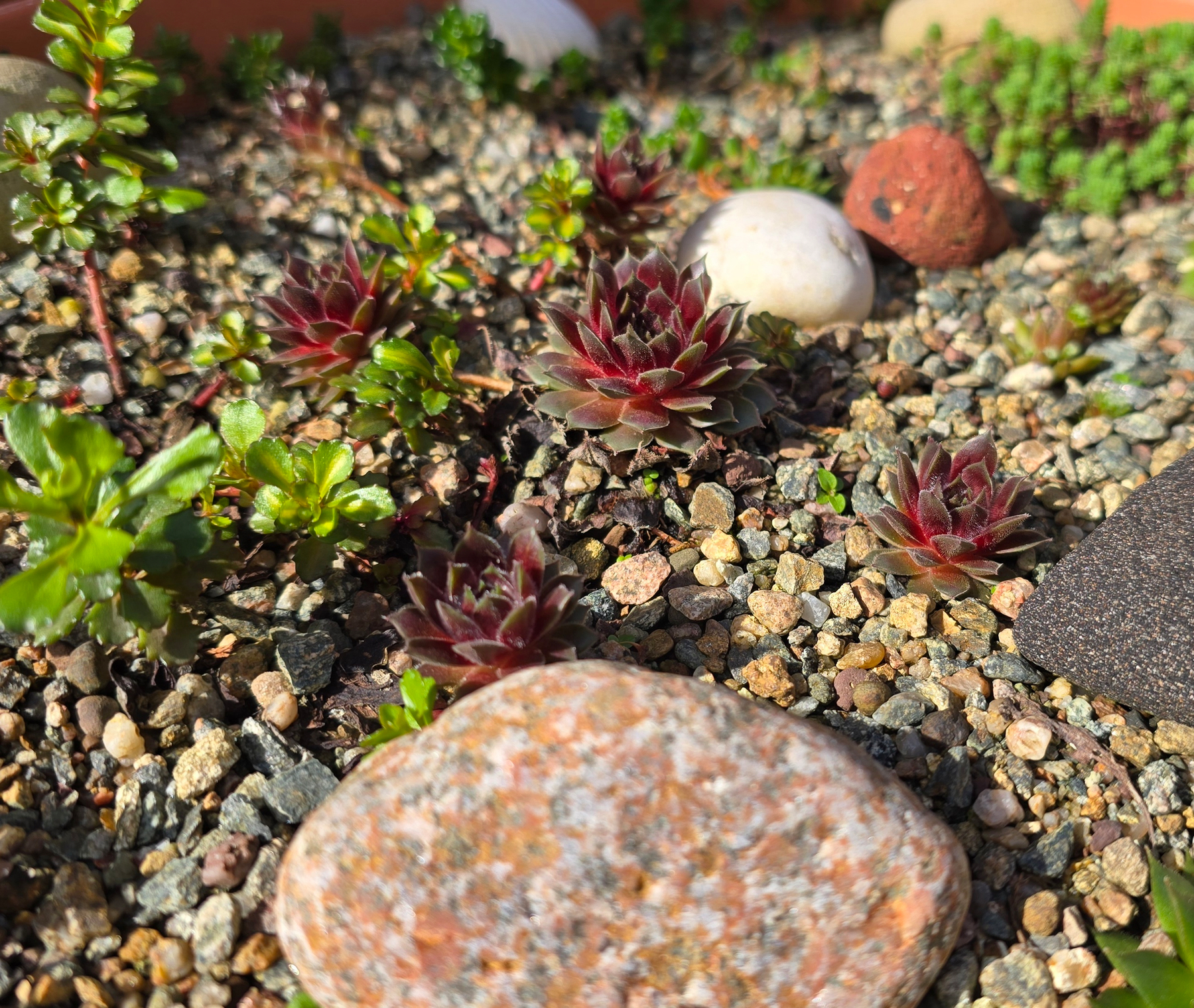 My succulent garden has come a long way since it was transplanted into its new home last October, just before I moved. It weathered the winter and has returned with bright gravitas. Enjoying the spring sunshine now, it’s looking full of colourful life.